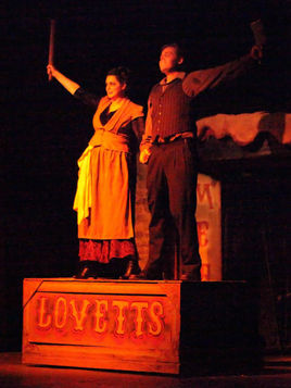 In a move of genius stupidity POP, barely a year old, decided to produce one of the most complicated shows in all of music theater history. An unqualified success with two casts, a large chorus, orchestra and 7 sold-out performances, Sweeney proved to be a risk well worth taking. The production opened at Porticoes Art Space and moved to The Miles Playhouse.